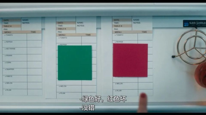 客人的点单用红绿色区分,这样后厨就能知道哪些菜品需要加急。